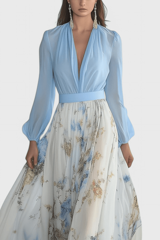 Lamiss | V-Neck Long Sleeve Flowy Maxi Dress